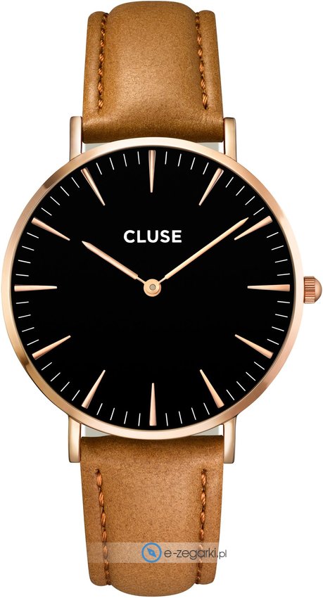Zegarek CL18004 marki Cluse to stylowy zegarek naręczny damski, który jest wyposażony w pomysłowe rozwiązania i funkcje. Model ten pochodzi z kolekcji Cluse La Boheme. Cyferblat zegarka jest w kolorze czarnym. Zegarek ten prezentuje godzinę w formacie analogowym dzięki czemu odczyt jest intuicyjny. Koperta została pokryta kolorem różowo złotym szeroka jest na 38 mm oraz ma grubość 7 mm - w kształcie okrągłym.