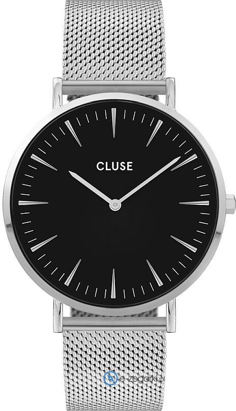 Zegarek damski CW0101201004 marki Cluse należy do kolekcji Cluse La Boheme. Cyferblat zegarka jest w kolorze czarnym. Aktualna godzina pokazywana jest w sposób analogowy co niezmiernie łatwo pozwala ją odczytać. Koperta jest w kolorze srebrnym szeroka jest na 38 mm oraz ma grubość 7 mm - ma okrągły kształt.