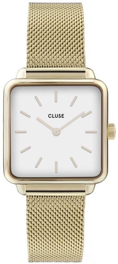 Zegarek damski CG10318 marki Cluse należy do rodziny Cluse La Tetragone. Niestereotypowy wygląd zegarka osiągnięto także dzięki tarczy w kolorze białym. Aktualna godzina pokazywana jest w sposób analogowy co niezmiernie łatwo pozwala ją odczytać. Koperta jest w kolorze złotym szeroka jest na 29 mm oraz ma grubość 7 mm.