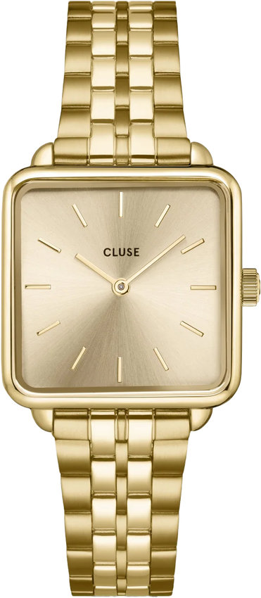 Zegarek damski CG10324 marki Cluse to idealne połączenie funkcjonalności oraz ciekawego wzornictwa. Model ten w gamie pozostałych zegarków tego producenta występuje w serii Cluse La Tetragone. Charakterystyczną stylistykę czasomierza osiągnięto dzięki tarczy w kolorze złotym. Zaprezentowana metodą analogową bieżąca godzina jest czytelna i prosta do sprawdzenia. Koperta w barwach koloru złotego szeroka jest na 29 mm oraz ma grubość 7 mm.