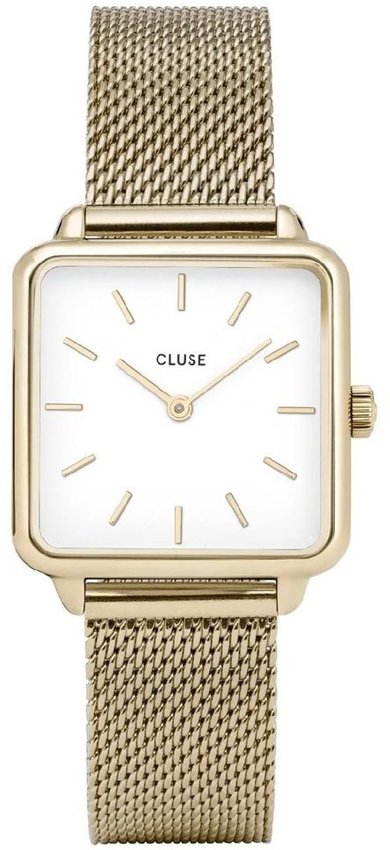 Zegarek damski CL60002 marki Cluse to dobre połączenie funkcjonalności i modnego wzornictwa. Model ten zalicza się do kolekcji Cluse La Tetragone. Ciekawą stylistykę czasomierza osiągnięto dzięki tarczy w kolorze białym. Zegarek ten pokazuje aktualny czas w formacie analogowym dzięki czemu odczyt jest intuicyjny. Koperta w odcieniach koloru złotego szeroka jest na 29 mm oraz ma grubość 7 mm.