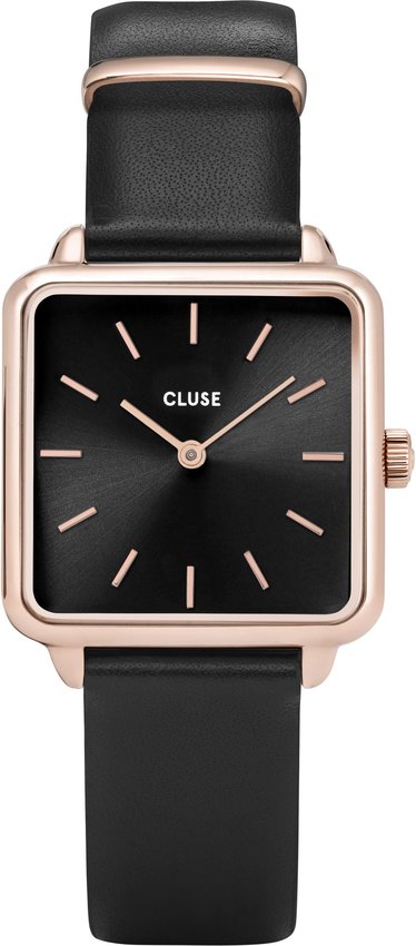 Model damski CL60007 marki Cluse z rodziny Cluse La Tetragone. Styl zapewnia wysokiej jakości tarcza w kolorze czarnym. Pokazana metodą analogową aktualna godzina jest czytelna i szybka do sprawdzenia. Koperta jest w kolorze różowo złotym szeroka jest na 29 mm oraz ma grubość 7 mm.