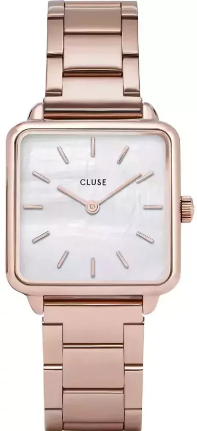 Model damski CL60027S należy do serii Cluse La Tetragone marki Cluse. Nieschematyczny wygląd czasomierza osiągnięto m.in. poprzez tarczę w kolorze jasnym. Aktualna godzina przedstawiona jest w sposób analogowy co bez trudu pozwala ją odczytać. Koperta w odcieniach koloru różowo złotego szeroka jest na 28 mm oraz ma grubość 6 mm - charakteryzuje się prostokątnym kształtem.