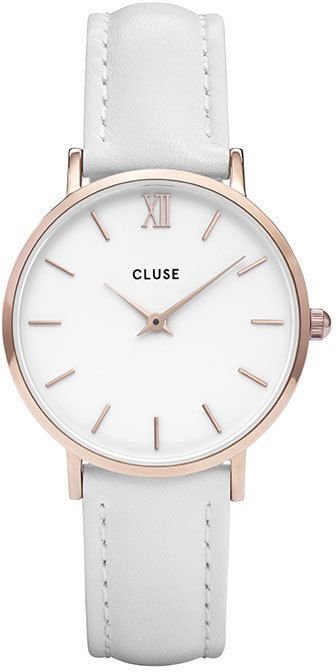 Model damski CL30056 z rodziny Cluse Minuit marki Cluse. Styl zapewnia wysokiej klasy cyferblat w kolorze białym. Zegarek ten prezentuje aktualny czas w formacie analogowym dzięki temu odczyt jest bezproblemowy. Koperta w barwach koloru różowo złotego szeroka jest na 33 mm oraz ma grubość 7 mm - cechuje się okrągłym kształtem.