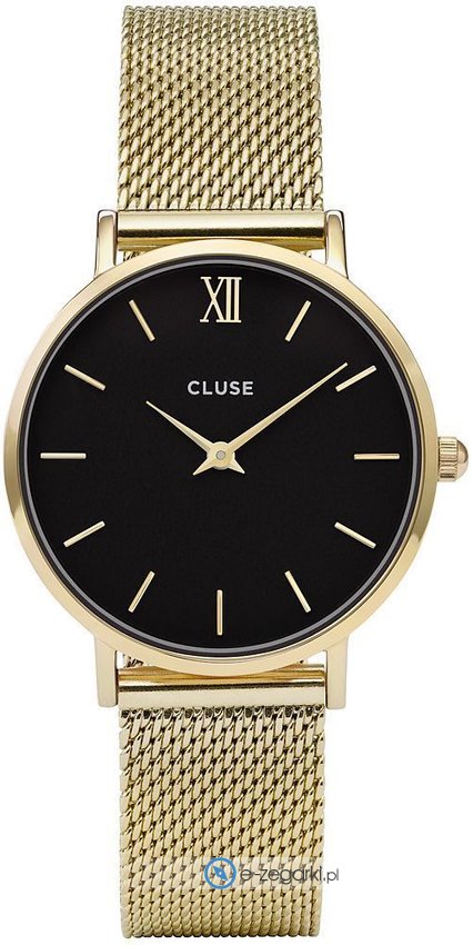 Model damski CW0101203017 - CL30012 marki Cluse z rodziny Cluse Minuit. Charakterystyczny wygląd zegarka uzyskano również dzięki tarczy w kolorze czarnym. Zegarek ten pokazuje aktualny czas w formacie analogowym dzięki temu odczyt jest bardzo łatwy. Koperta jest ozdobiona kolorem złotym szeroka jest na 33 mm oraz ma grubość 7 mm - ma okrągły kształt.
