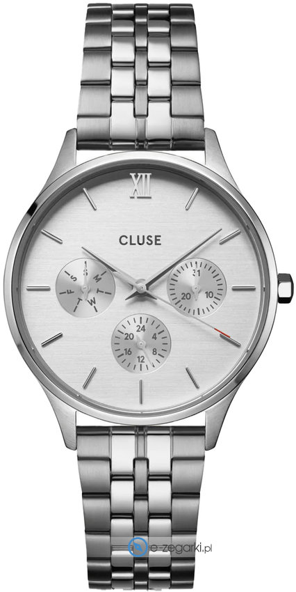 Cluse CW10703 to damski zegarek przeznaczony dla osób szukających zegarka z rodziny Cluse Minuit. Charakteru dodaje wysokiej jakości tarcza w kolorze srebrnym. Godzina prezentowana jest w sposób analogowy co bez trudu pozwala ją odczytać. Koperta w odcieniach koloru srebrnego szeroka jest na 34 mm oraz ma grubość 7 mm - w kształcie okrągłym.