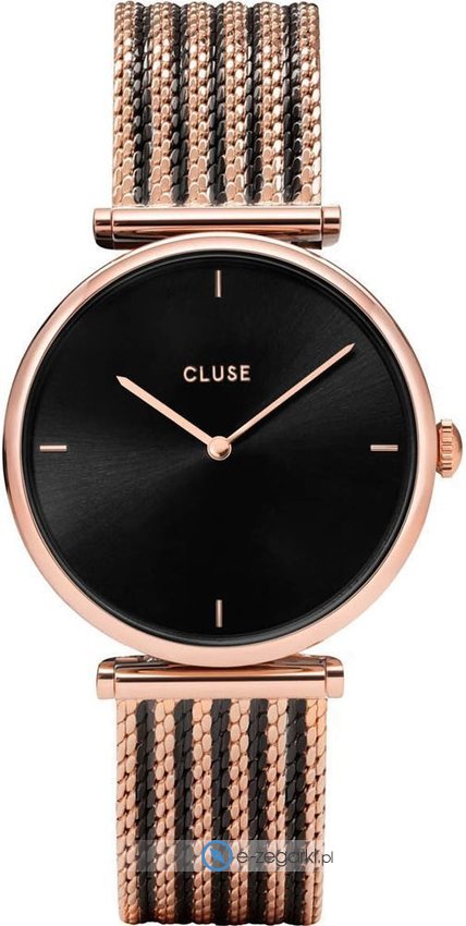 Zegarek damski CW0101208005 marki Cluse to stylowe połączenie funkcjonalności i modnego wzornictwa. Model ten jest z serii Cluse Triomphe. Cyferblat zegarka jest w kolorze czarnym. Pokazana metodą analogową bieżąca godzina jest czytelna i szybka do sprawdzenia. Koperta jest w kolorze różowo złotym szeroka jest na 33 mm oraz ma grubość 7 mm - ma okrągły kształt.