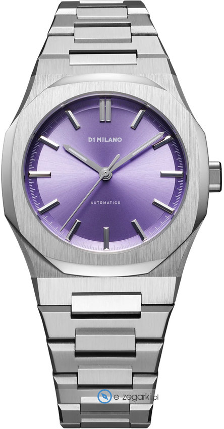 Model ATBU03 marki D1 Milano to elegancki zegarek naręczny damski, który wyposażono w ciekawe rozwiązania i funkcje. Charakterystyczny wygląd zegarka osiągnięto m.in. poprzez cyferblat w kolorze fioletowym. Zegarek ten pokazuje aktualny czas w formacie analogowym dzięki temu odczyt jest bardzo łatwy. Koperta jest ozdobiona kolorem srebrnym szeroka jest na 36 mm oraz ma grubość 9 mm.