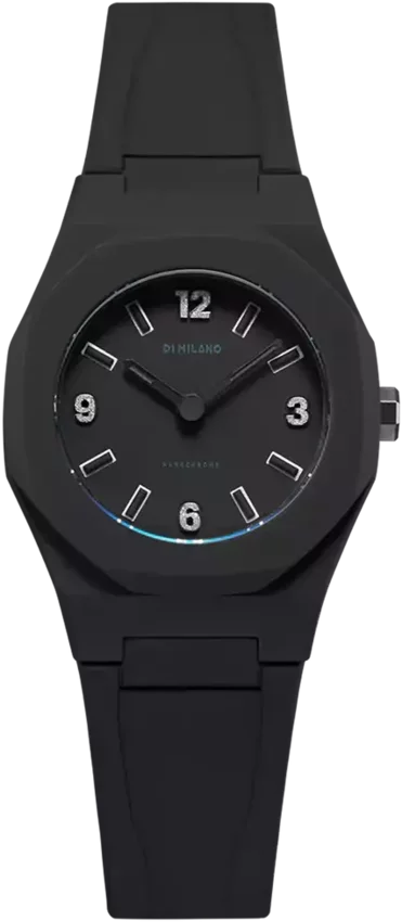 Zegarek damski NCRJ01 marki D1 Milano to idealne połączenie funkcjonalności i ciekawego designu. Styl zapewnia wysokiej jakości cyferblat w kolorze czarnym. Aktualna godzina prezentowana jest w sposób analogowy co niezmiernie łatwo pozwala ją odczytać. Koperta jest w kolorze czarnym szeroka jest na 32 mm oraz ma grubość 8 mm.