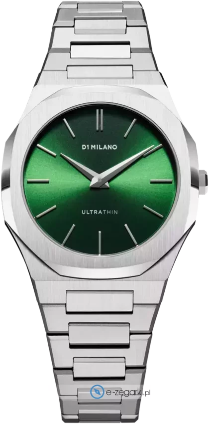 Zegarek damski UTBL11 marki D1 Milano to idealna propozycja dla osób ceniących sobie dbałość o szczegóły a także sprawne zachowanie mechanizmów. Atrakcyjny wygląd czasomierza uzyskano także dzięki tarczy w kolorze zielonym. Zaprezentowana metodą analogową aktualna godzina jest czytelna i szybka do sprawdzenia. Koperta jest ozdobiona kolorem srebrnym szeroka jest na 34 mm oraz ma grubość 6 mm.