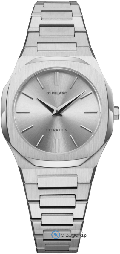 Zegarek damski UTBL30 marki D1 Milano to stylowe połączenie funkcjonalności oraz modnego designu. Styl zapewnia wysokiej klasy cyferblat w kolorze srebrnym. Pokazana metodą analogową bieżąca godzina jest czytelna i łatwa do sprawdzenia. Koperta w barwach koloru srebrnego szeroka jest na 30 mm oraz ma grubość 7 mm - w kształcie ośmiokątnym.