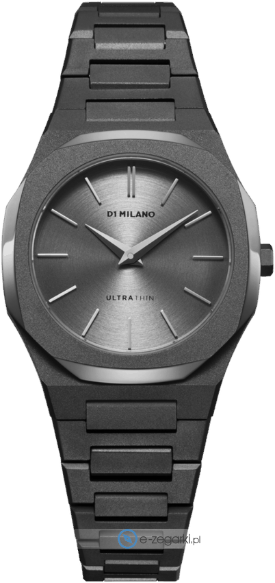 Zegarek damski UTBL32 marki D1 Milano to stylowe połączenie funkcjonalności a także ciekawego wzornictwa. Charakterystyczny wygląd czasomierza uzyskano także dzięki tarczy w kolorze szarym. Aktualna godzina przedstawiona jest w sposób analogowy co bez trudu pozwala ją odczytać. Koperta jest ozdobiona kolorem szarym szeroka jest na 30 mm oraz ma grubość 6.45 mm - w kształcie ośmiokątnym.