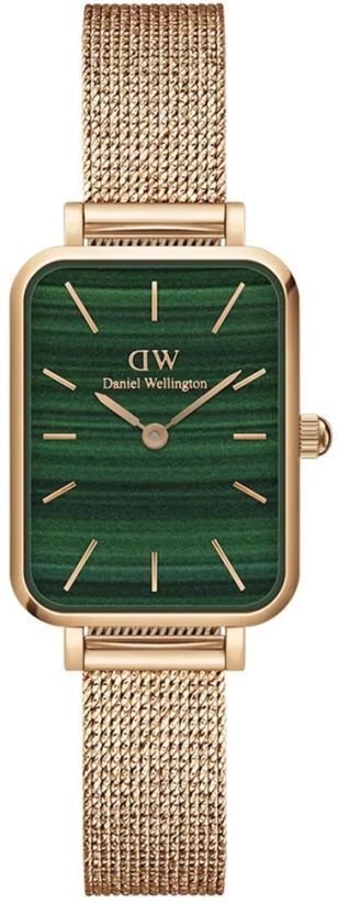 Zegarek damski DW00100437 marki Daniel Wellington to idealna propozycja dla osób ceniących sobie dbałość o szczegóły oraz bezawaryjne funkcjonowanie mechanizmów. Ciekawą konstrukcję czasomierza osiągnięto dzięki tarczy w kolorze zielonym. Pokazana metodą analogową bieżąca godzina jest czytelna i prosta do odczytania. Koperta w odcieniach koloru różowo złotego szeroka jest na 20 mm oraz ma grubość 6 mm - w kształcie prostokątnym.