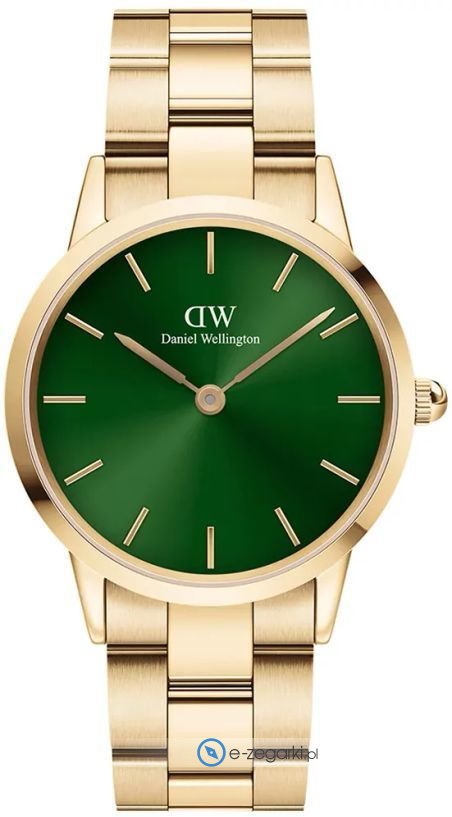 Zegarek damski DW00100553 marki Daniel Wellington to ciekawa propozycja dla ludzi ceniących sobie dbałość o detale a także bezawaryjne funkcjonowanie mechanizmów. Charakteru dodaje wysokiej jakości tarcza w kolorze zielonym. Zaprezentowana metodą analogową bieżąca godzina jest czytelna i prosta do sprawdzenia. Koperta została ozdobiona kolorem złotym szeroka jest na 36 mm oraz ma grubość 8 mm - posiada okrągły kształt.