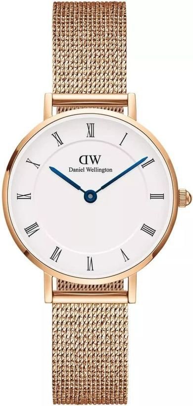 Model DW00100681 marki Daniel Wellington to gustowny zegarek naręczny damski, który łączy w sobie minimalizm i elegancję. Zegarki Daniel Wellington bezsprzecznie stanowią wyborne połączenie minimalistycznego designu z funkcjonalnością i jakością wykonania. Skandynawska prostota zegarków DW sprawia, iż pasują one jednocześnie do powszednich stylizacji, jak i gustownych kreacji na wyjąkowe okoliczności. Powszechnie doceniane mechanizmy kwarcowe Miyota gwarantują precyzję działania, natomiast materiały takie jak antyalergiczna stal szlachetna czy wytrzymałe na zarysowania szkiełko mineralne zapewniają trwałość. Tarcza zegarka jest w kolorze białym. Aktualna godzina pokazywana jest w sposób analogowy co bez trudu pozwala ją odczytać. Koperta w barwach koloru różowo złotego szeroka jest na 28 mm oraz ma grubość 6 mm - w kształcie okrągłym, co idealnie pasuje na subtelny, kobiecy nadgarstek.