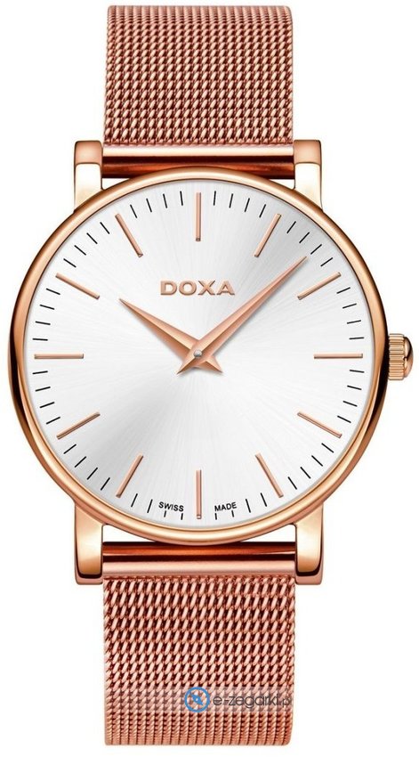 Zegarek damski 173.95.021.17 marki Doxa to idealne połączenie funkcjonalności a także ciekawego wzornictwa. Charakteru dodaje wysokiej klasy tarcza w kolorze srebrnym. Zaprezentowana metodą analogową bieżąca godzina jest czytelna i prosta do sprawdzenia. Koperta w barwach koloru różowo złotego szeroka jest na 32 mm oraz ma grubość 7 mm - w kształcie okrągłym.