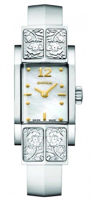 Zegarek damski 420.15.053Y.10S marki Doxa to stylowe połączenie funkcjonalności oraz ciekawego designu. Pokazana metodą analogową bieżąca godzina jest czytelna i szybka do sprawdzenia. Koperta jest w kolorze srebrnym szeroka jest na 17 mm oraz ma grubość 5 mm - posiada prostokątny kształt.