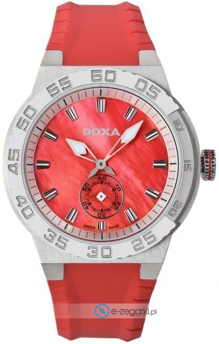 Model 704.15.161.22 marki Doxa to elegancki zegarek naręczny damski, który wyposażono w pomysłowe rozwiązania i funkcje. Ciekawą budowę zegarka uzyskano z pomocą tarczy w kolorze czerwonym. Koperta szeroka jest na 39 mm oraz ma grubość 11 mm - ma okrągły kształt.