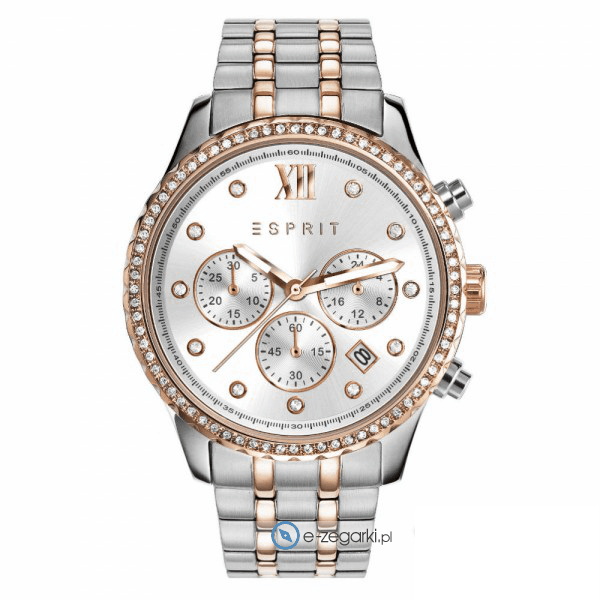 Model ES108732003 marki Esprit to stylowy zegarek naręczny damski, który wyposażono w ciekawe rozwiązania i funkcje. Stylu dodaje wysokiej klasy cyferblat w kolorze jasnym. Koperta jest w kolorze srebrno złotym - w kształcie okrągłym.