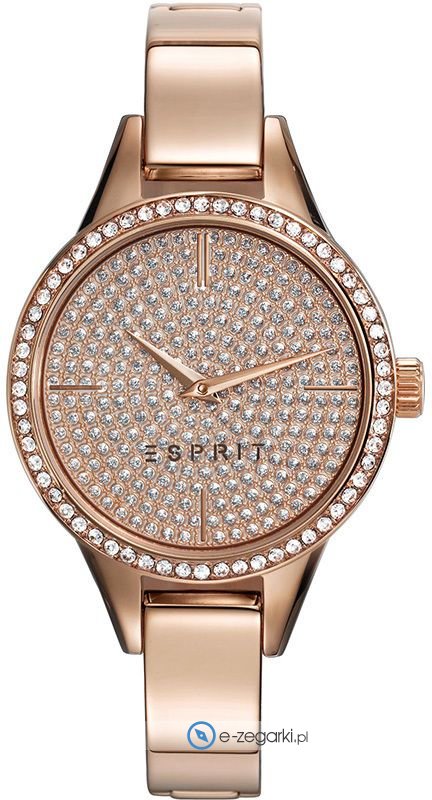 Zegarek ES109062003 posiada kwarcowy mechanizm zasilany standardową baterią. Bransoletę w odcieniach koloru złotego wykonaną ze stali nierdzewnej dodatkowo pokryto powłoką PVD przez co zwiększono odporność na korozję a także działanie czynników atmosferycznych.