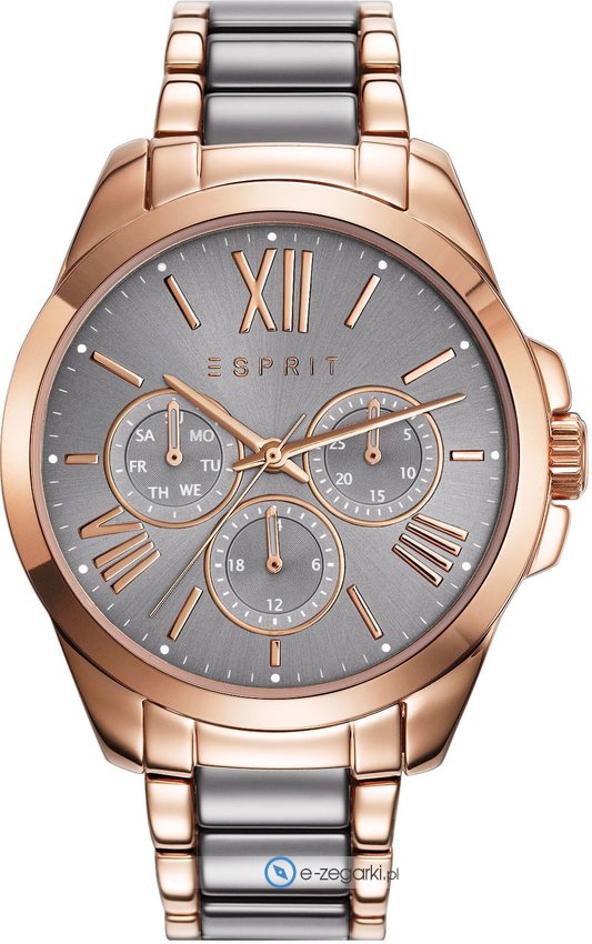 Zegarek damski ES109222003 marki Esprit to idealne połączenie funkcjonalności a także ciekawego designu. Koperta szeroka jest na 38 mm oraz ma grubość 9 mm.
