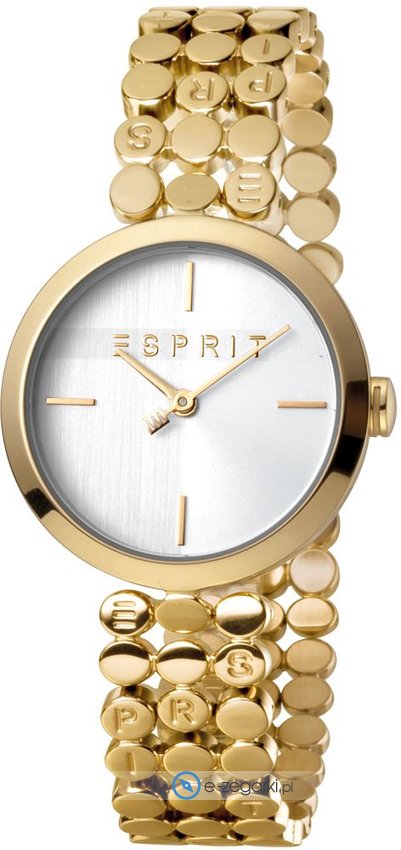 Damski zegarek Esprit ES1L018M0035 to zegarek, który dzięki swemu wzornictwu zawsze będzie prezentował się dobrze. Charakter zapewnia wysokiej klasy tarcza w kolorze jasnym. Koperta została pokryta kolorem złotym szeroka jest na 30 mm oraz ma grubość 7 mm - posiada okrągły kształt.