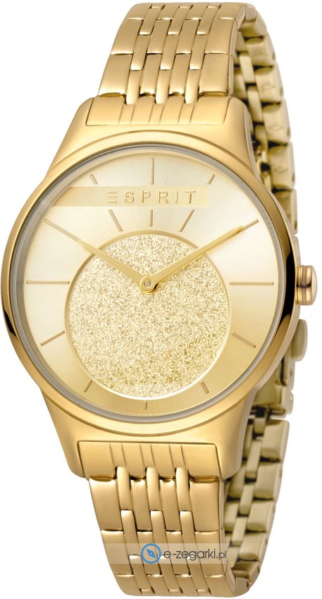 Model ES1L026M0055 marki Esprit to elegancki zegarek naręczny damski, który wyposażono w ciekawe rozwiązania i funkcje. Koperta szeroka jest na 34 mm oraz ma grubość 9 mm - w kształcie okrągłym.