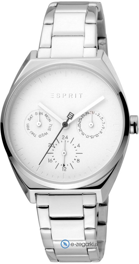 Zegarek damski ES1L060M0055 marki Esprit to stylowe połączenie funkcjonalności oraz ciekawego designu. Wysokiej trwałości cyferblat zegarka ozdobiono białym kolorem. Koperta jest pokryta kolorem srebrnym szeroka jest na 34 mm - w kształcie okrągłym.