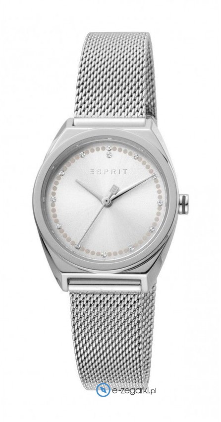 Model ES1L100M0055 marki Esprit to gustowny zegarek naręczny damski, który jest wyposażony w pomysłowe rozwiązania oraz funkcje. Ciekawy wygląd zegarka osiągnięto m.in. poprzez cyferblat w kolorze srebrnym. Koperta została ozdobiona kolorem srebrnym szeroka jest na 28 mm - ma okrągły kształt.