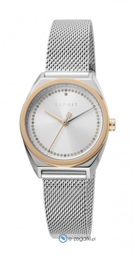Zegarek damski ES1L100M0095 marki Esprit to dobre połączenie funkcjonalności a także ciekawego wzornictwa. Atrakcyjny wygląd zegarka uzyskano m.in. poprzez cyferblat w kolorze srebrnym. Koperta szeroka jest na 28 mm - posiada okrągły kształt.