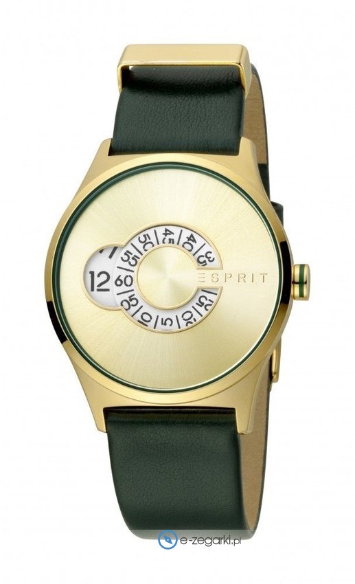 Zegarek damski ES1L103L0045 marki Esprit to stylowe połączenie funkcjonalności oraz modnego designu. Wysokiej jakości tarczę zegarka ozdobiono złotym kolorem. Koperta w barwach koloru złotego - wyróżnia się okrągłym kształtem.