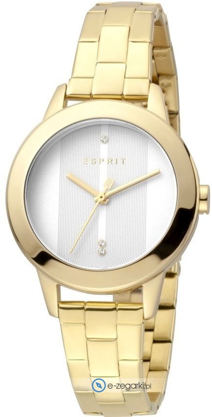 Model ES1L105M0275 marki Esprit to stylowy zegarek naręczny damski, który posiada ciekawe rozwiązania oraz funkcje. Stylu dodaje wysokiej jakości tarcza w kolorze białym. Koperta została ozdobiona kolorem złotym szeroka jest na 32 mm - w kształcie okrągłym.