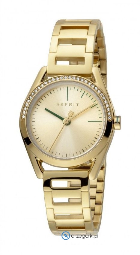 Zegarek ES1L117M0065 wyposażony jest w mechanizm zasilany normalną baterią kwarcową. Wytrzymała bransoleta jest w kolorze złotym wytworzona ze stali nierdzewnej zapewnia wysoką jakość i trwałość.