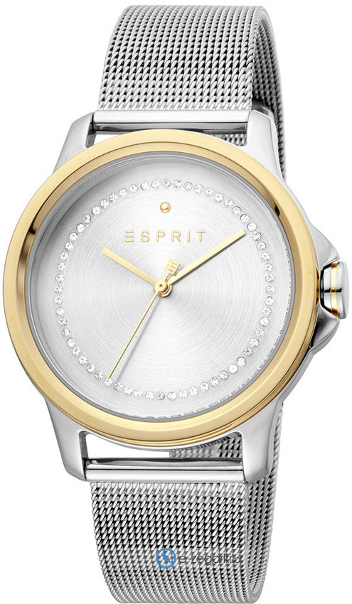 Zegarek damski ES1L147M0105 marki Esprit to stylowe połączenie funkcjonalności a także modnego wzornictwa. Styl zapewnia wysokiej klasy tarcza w kolorze srebrnym. Aktualna godzina prezentowana jest w sposób analogowy co bez trudu pozwala ją odczytać. Koperta w barwach koloru srebrno złotego szeroka jest na 36 mm oraz ma grubość 8 mm - charakteryzuje się okrągłym kształtem.
