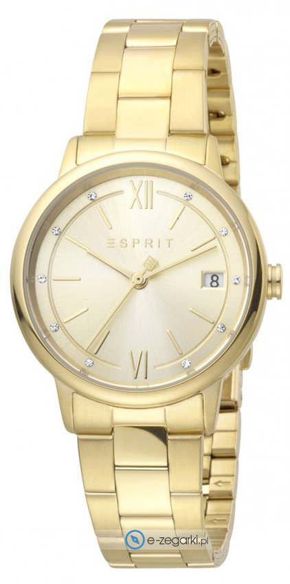 Zegarek damski ES1L181M0095 marki Esprit to dobra pozycja dla osób ceniących sobie dbałość o szczegóły oraz bezawaryjne zachowanie mechanizmów. Ciekawy wygląd zegarka osiągnięto również dzięki tarczy w kolorze złotym. Pokazana metodą analogową aktualna godzina jest czytelna i szybka do sprawdzenia. Koperta jest w kolorze złotym szeroka jest na 32 mm oraz ma grubość 9 mm - charakteryzuje się okrągłym kształtem.