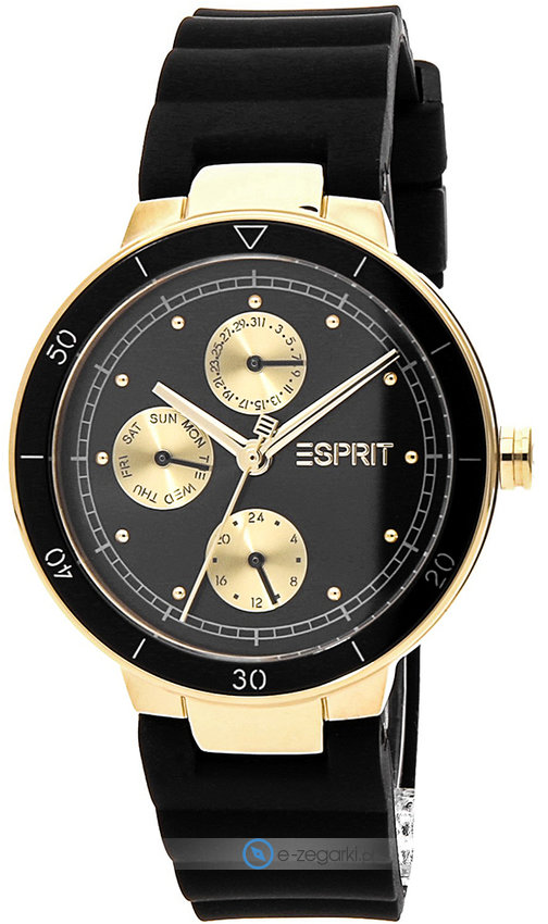 Zegarek damski ES1L226P0075 marki Esprit to dobra propozycja dla osób ceniących sobie dbałość o detale jak również sprawne zachowanie mechanizmów. Charakter zapewnia wysokiej jakości tarcza w kolorze czarnym. Zegarek ten prezentuje godzinę w formacie analogowym dzięki temu odczyt jest bezproblemowy. Koperta w barwach koloru złotego szeroka jest na 36 mm oraz ma grubość 10 mm - ma okrągły kształt.