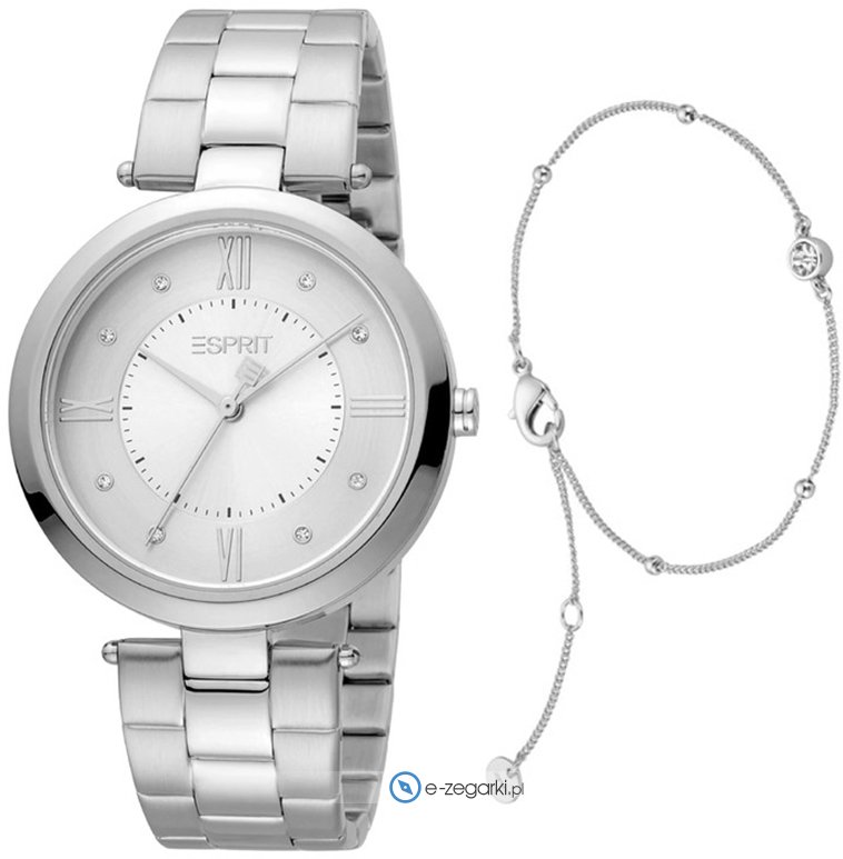Zegarek damski ES1L252M0015 marki Esprit to dobre połączenie funkcjonalności oraz modnego wzornictwa. Charakterystyczną budowę zegarka osiągnięto z pomocą tarczy w kolorze srebrnym. Godzina zaprezentowana jest w sposób analogowy co bez trudu pozwala ją odczytać. Koperta w odcieniach koloru srebrnego szeroka jest na 36 mm - w kształcie okrągłym.