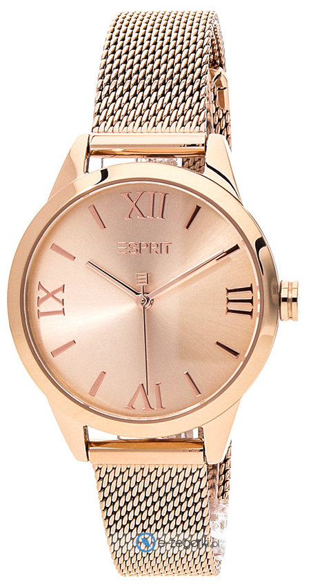 Zegarek damski ES1L259M2125 marki Esprit to dobre połączenie funkcjonalności oraz modnego wzornictwa. Charakterystyczny wygląd czasomierza osiągnięto m.in. poprzez tarczę w kolorze różowo złotym. Aktualna godzina przedstawiona jest w sposób analogowy co intuicyjnie pozwala ją odczytać. Koperta szeroka jest na 32 mm oraz ma grubość 7 mm - posiada okrągły kształt.