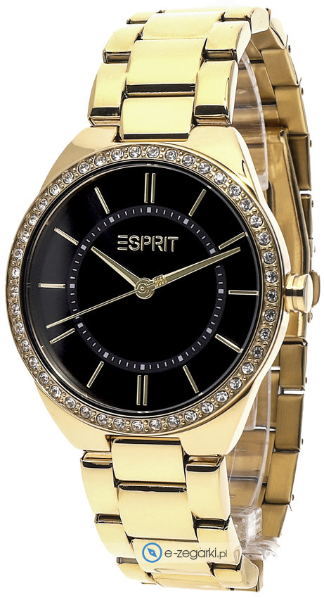 Zegarek damski ES1L326M0065 marki Esprit to idealne połączenie funkcjonalności oraz modnego wzornictwa. Atrakcyjną budowę czasomierza osiągnięto z pomocą tarczy w kolorze czarnym. Zegarek ten pokazuje aktualny czas w formacie analogowym dzięki temu odczyt jest bezproblemowy. Koperta jest w kolorze złotym szeroka jest na 38 mm oraz ma grubość 7 mm - posiada okrągły kształt.