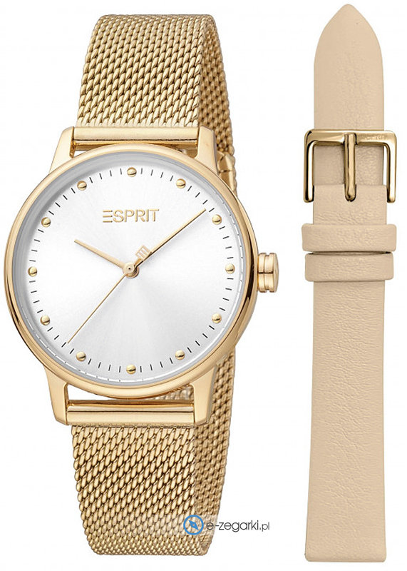 Model ES1L334M0035 marki Esprit to stylowy zegarek naręczny damski, który posiada ciekawe rozwiązania i funkcje. Ciekawy wygląd czasomierza uzyskano również dzięki tarczy w kolorze srebrnym. Zegarek ten prezentuje aktualny czas w formacie analogowym dzięki temu odczyt jest bardzo łatwy. Koperta jest ozdobiona kolorem złotym szeroka jest na 32 mm oraz ma grubość 7 mm - w kształcie okrągłym.