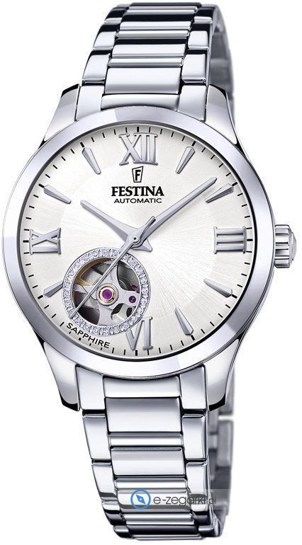 Zegarek damski F20488-1 marki Festina to dobre połączenie funkcjonalności a także modnego designu. Model ten należy do kolekcji Festina Automatic. Zegarek ten pokazuje aktualny czas w formacie analogowym dzięki czemu odczyt jest bardzo łatwy. Koperta szeroka jest na 33 mm oraz ma grubość 10 mm - w kształcie okrągłym.