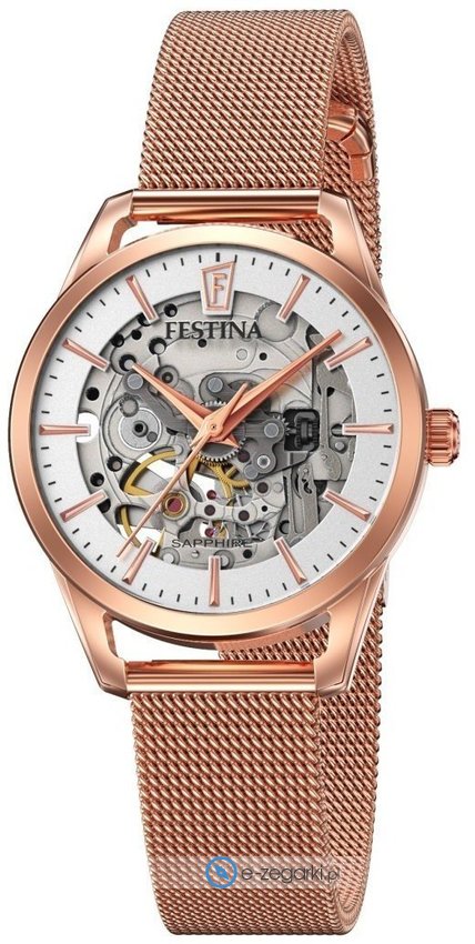 Zegarek F20539-1 posiada mechanizm automatyczny nakręcający się od ruchu ręki. Wytrzymała bransoleta jest w kolorze różowo złotym wykonana ze stali nierdzewnej gwarantuje wysoką jakość i trwałość.