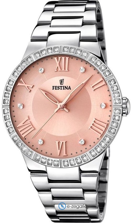 Festina F16719-3 to damski zegarek przeznaczony dla osób szukających zegarka z rodziny Festina Boyfriend. Niestereotypowy wygląd zegarka uzyskano m.in. poprzez tarczę w kolorze różowym. Zegarek ten pokazuje godzinę w formacie analogowym dzięki temu odczyt jest bardzo łatwy. Koperta jest w kolorze srebrnym szeroka jest na 36 mm oraz ma grubość 9 mm - posiada okrągły kształt.