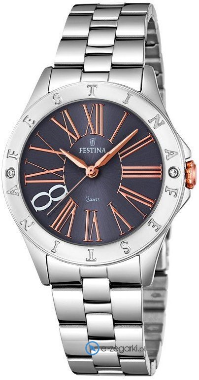 Festina tej marki chyba nie trzeba specjalnie przedstawiać. To lubiana i ceniona praktycznie na całym świecie marka zajmująca się produkcją zegarków, która narodziła się początkiem XX wieku w Szwajcarii. Od czasu kiedy marka trafiła do nowej grupy Festina Group w latach 80-tych poprzedniego stulecia stała się bardzo zauważalna. W dzisiejszych czasach zegarki Festina można nabyć w ponad pięćdziesięciu krajach na wszystkich kontynentach. Markę Festina bardzo często można dostrzec na różnego przekroju imprezach sportowych, np wyścigach kolarskich Tour de France. Istotną cechą zgeraków Festina jest posiadanie specjalnie utwardzanego szkiełka mineralnego na które marka udziela osobnej 5 letniej gwarancji. Obecnie twarzą marki jest znany i szanowany aktor Gerard Butler, można go zobaczyć w wielu reklamach właśnie z czasomierzem Festina.