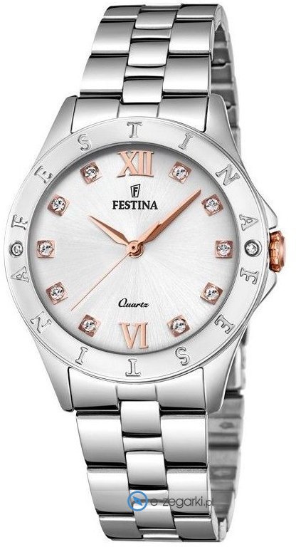 Festina tego brandu chyba nie ma konieczności specjalnie prezentować. To znana i doceniana praktycznie na całym świecie marka zajmująca się produkcją zegarków, która narodziła się na początku XX wieku w szwajcarskiej miejscowości La Chaux-de-Fonds. Od momentu kiedy marka trafiła do nowej grupy Festina Group w latach osiemdziesiątych ubiegłego stulecia stała się nizwykle popularna. Obecnie zegarki Festina można dostać w ponad 50 krajach na wszystkich kontynentach. Markę Festina bardzo często można dostrzec na różnego rodzaju imprezach sportowych, np wyścigach kolarskich Tour de France. Istotną cechą zgeraków Festina jest posiadanie specjalnie utwardzanego szkiełka mineralnego na które Festina udziela osobnej pięcio letniej gwarancji. Współcześnie twarzą marki jest modny i szanowany aktor Gerard Butler, można go zobaczyć w wielu reklamach właśnie z zegarkiem Festina.
