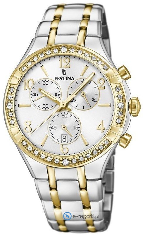 Festina tej marki z pewnością nie ma potrzeby specjalnie prezentować. To lubiana i uznawana praktycznie na całym świecie marka zajmująca się produkcją czasomierzy, która narodziła się początkiem XX wieku w Szwajcarii. Od czasu kiedy marka weszła w skład nowej grupy Festina Group w latach 80-tych ubiegłego stulecia stała się bardzo zauważalna. W dzisiejszych czasach zegarki Festina można kupić w ponad pięćdziesięciu krajach na świecie. Markę Festina bardzo często można zobaczyć na różnego przekroju imprezach sportowych, np wyścigach kolarskich Tour de Pologne. Istotną cechą zgeraków Festina jest posiadanie specjalnego utwardzanego szkiełka mineralnego na które Festina udziela osobnej pięcio letniej gwarancji. Obecnie twarzą marki jest popularny i szanowany aktor Gerard Butler, można go dostrzec w wielu spotach reklamowych właśnie z zegarkiem Festina.