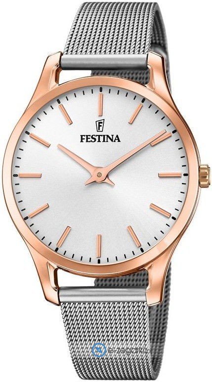 Festina tej marki chyba nie ma konieczności specjalnie prezentować. To lubiana i ceniona praktycznie na całym świecie marka zajmująca się produkcją zegarków, która narodziła się na początku XX wieku w Szwajcarii. Od czasu gdy marka weszła w skład osobnej grupy Festina Group w latach osiemdziesiątych poprzedniego stulecia stała się bardzo zauważalna. W dzisiejszych czasach zegarki Festina można kupić w ponad 50 krajach na świecie. Markę Festina bardzo często można zobaczyć na różnego przekroju imprezach sportowych, np wyścigach kolarskich Tour de Pologne. Istotną cechą zgeraków Festina jest posiadanie specjalnego utwardzanego szkiełka mineralnego na które Festina udziela osobnej 5 letniej gwarancji. Współcześnie twarzą marki jest słynny i szanowany aktor Gerard Butler, można go ujrzeć w wielu spotach reklamowych właśnie z czasomierzem Festina.