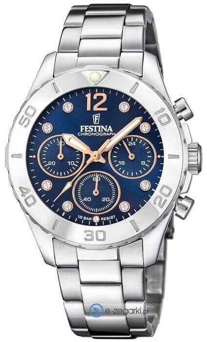 Festina tego brandu chyba nie ma potrzeby specjalnie przedstawiać. To znana i ceniona praktycznie na całym świecie marka zajmująca się produkcją zegarków, która narodziła się na początku XX wieku w szwajcarskiej miejscowości La Chaux-de-Fonds. Od momentu kiedy marka weszła w skład osobnej grupy Festina Group w latach 80-tych poprzedniego stulecia stała się bardzo zauważalna. W dzisiejszych czasach zegarki Festina można dostać w ponad pięćdziesięciu krajach na wszystkich kontynentach. Markę Festina bardzo często można zobaczyć na różnego rodzaju imprezach sportowych, np wyścigach kolarskich Tour de Pologne. Istotną cechą zgeraków Festina jest posiadanie specjalnego utwardzanego szkiełka mineralnego na które producent udziela osobnej pięcio letniej gwarancji. Obecnie twarzą marki jest popularny i ceniony aktor Gerard Butler, można go dostrzec w wielu reklamach właśnie z czasomierzem Festina.