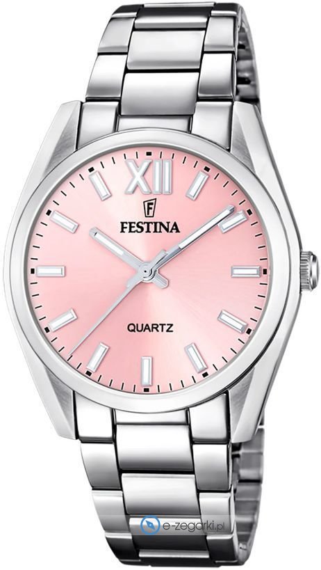Stalowa bransoleta gwarantuje komfort noszenia i trwałość. Koperta, wykonana z tego samego materiału, zapewnia odporność na uszkodzenia i korozję. Szkiełko mineralne chroni tarczę przed zarysowaniami, a wodoszczelność klasy WR 50 pozwala na swobodne korzystanie z zegarka w codziennych sytuacjach. Damski charakter podkreśla różowa tarcza, która dodaje subtelności i kobiecości. Festina to idealny wybór dla kobiet ceniących sobie połączenie funkcjonalności i modnego wyglądu.