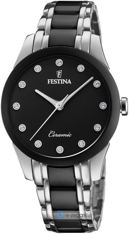 Zegarek damski F20499-3 marki Festina należy do rodziny Festina Ceramic. Charakteru dodaje wysokiej jakości cyferblat w kolorze czarnym. Zegarek ten pokazuje godzinę w formacie analogowym dzięki temu odczyt jest bardzo łatwy. Koperta w barwach koloru srebrnego szeroka jest na 35 mm - w kształcie okrągłym.
